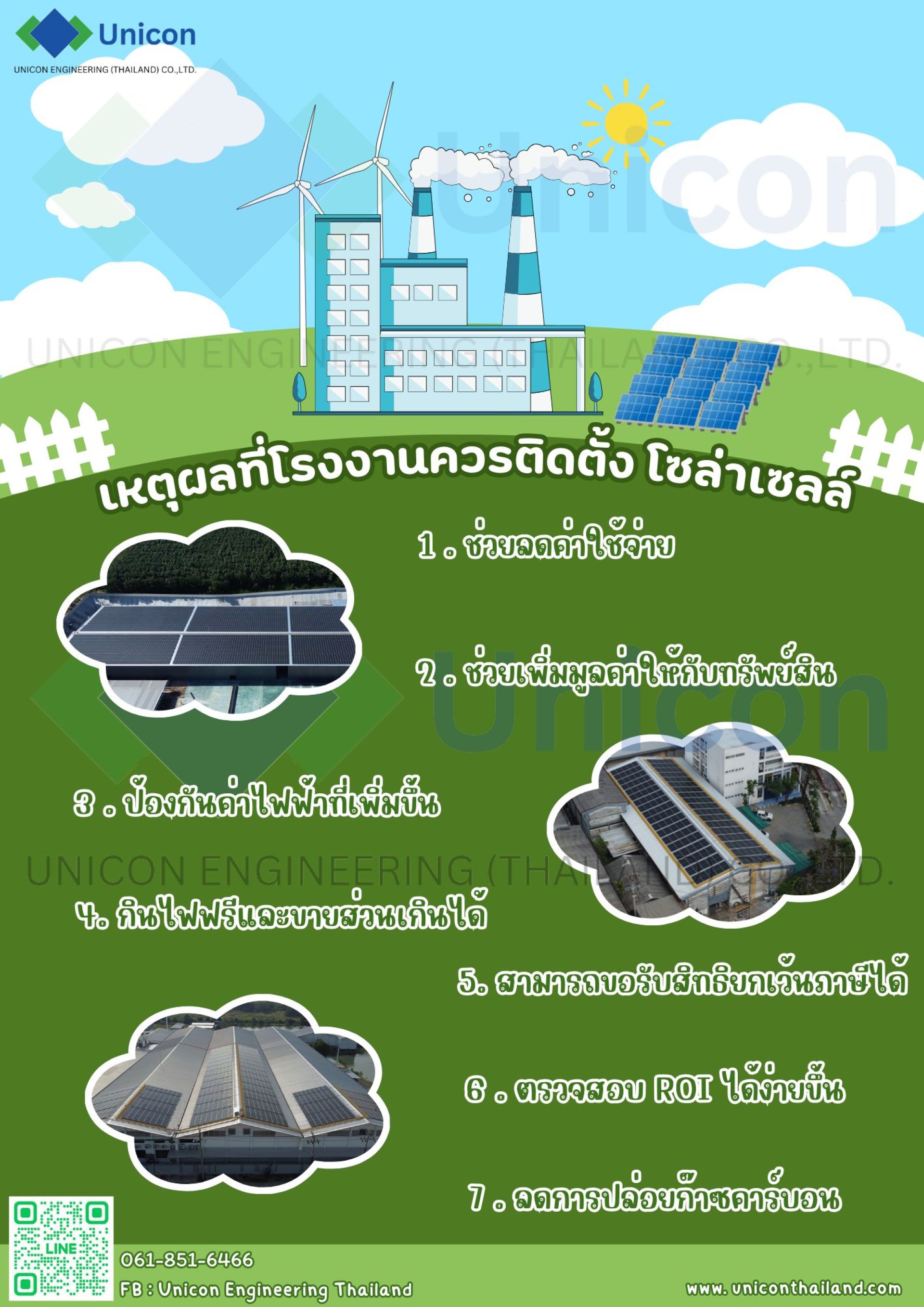การติดตั้งโซล่าเซลล์จึงไม่ใช่แค่การลงทุนเพื่อประหยัดค่าใช้จ่าย แต่ยังเป็นการลงทุนที่ช่วยเพิ่มมูลค่าให้กับธุรกิจและลดผลกระทบต่อสิ่งแวดล้อมในระยะยาว