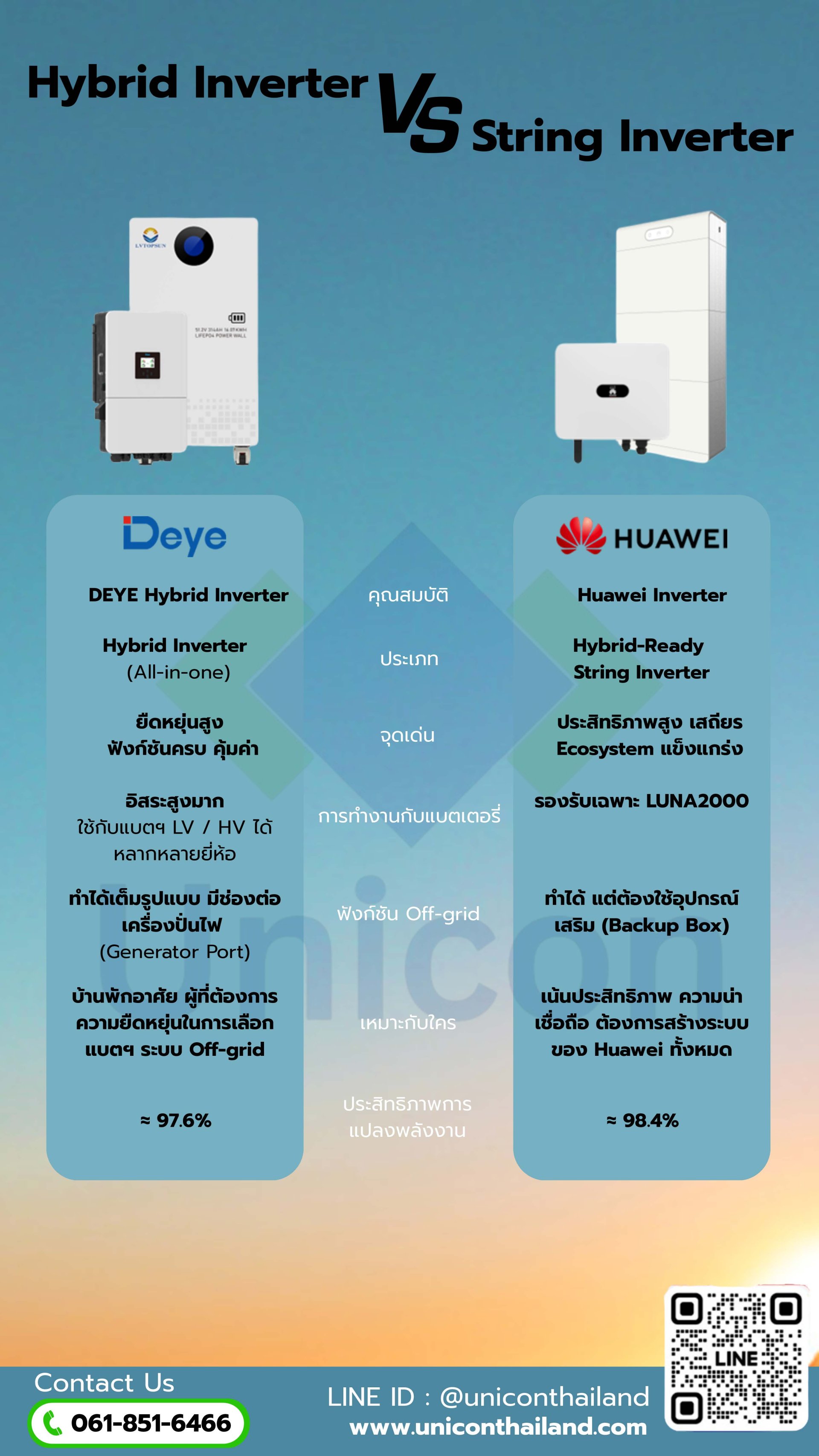 เลือกอินเวอร์เตอร์ให้คุ้ม! Deye Hybrid VS Huawei String